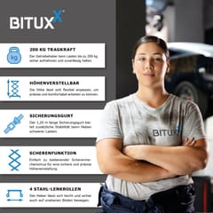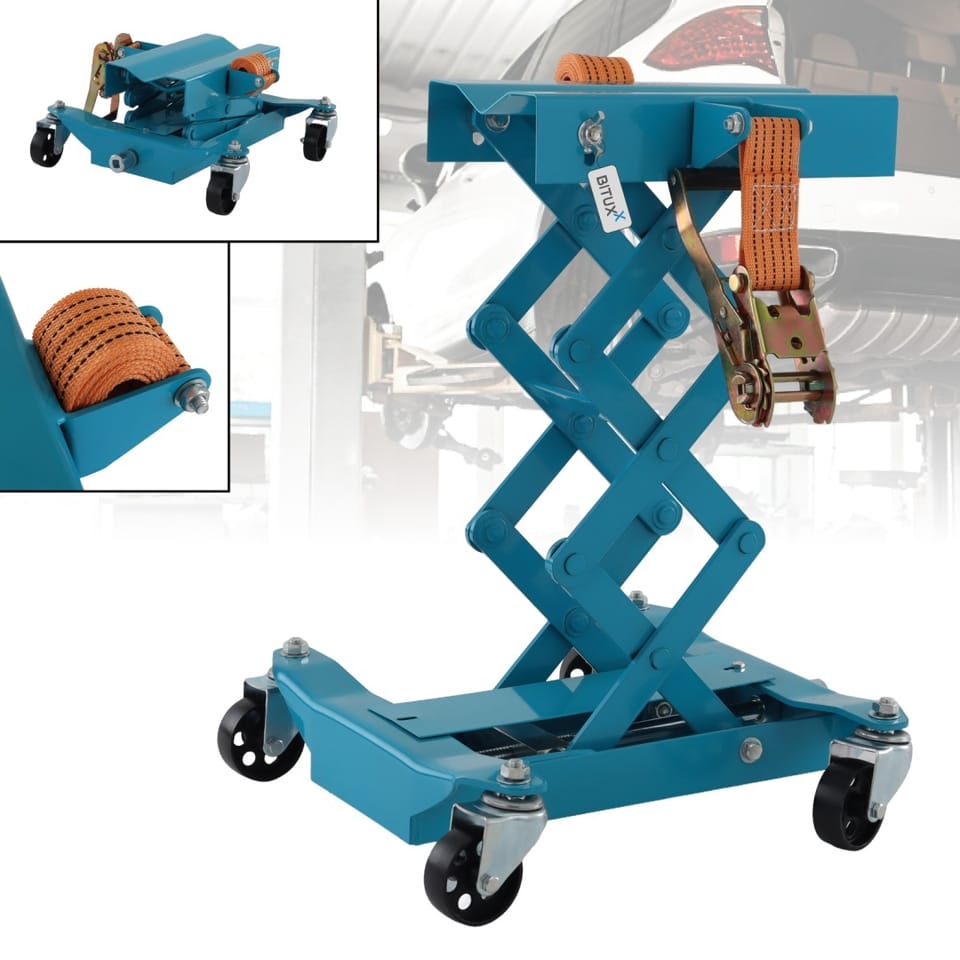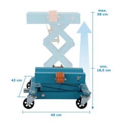 Hydrauliczny podnośnik skrzyni biegów („Getriebeheber”) przeznaczony do profesjonalnych warsztatów i ambitnych majsterkowiczów. Ułatwia demontaż i montaż skrzyń biegów oraz ciężkich elementów układu napędowego, zapewniając stabilne i bezpieczne podparcie. Wyróżnia się konstrukcją stalową, regulacją wysokości i bezpieczeństwem użytkowania.