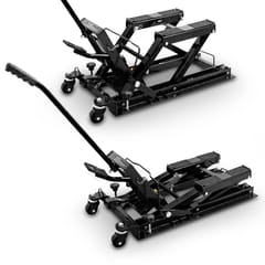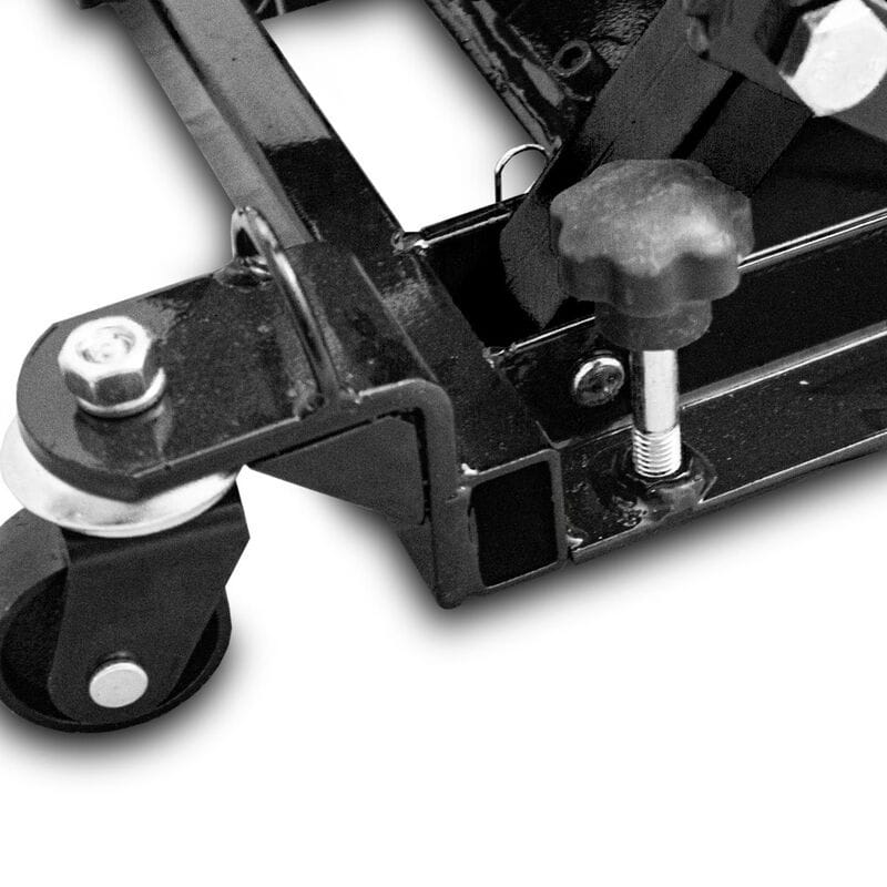 Podnośnik o wielu zastosowaniach, dzięki niemu podniesiesz motocykle, quady, itd. Niskoprofilowa platforma doskonale sprawdzi się przy podnoszeniu i opuszczaniu pojazdów w celu napraw. Posiada dwa skrętne kółka i śruby stabilizujące. Nożycowy podnośnik do motocykli z mechanizmem hydraulicznym jest bardzo wytrzymały i wykonany z najwyższej jakości materiałów. Wsporniki pokryte są gumą, aby zapobiec uszkodzeniu ramy pojazdu. Wyposażony w dwie niezależne dźwignie do regulacji wysokości. Możliwość złożenia zaoszczędzi dużo miejsca podczas przechowywania.