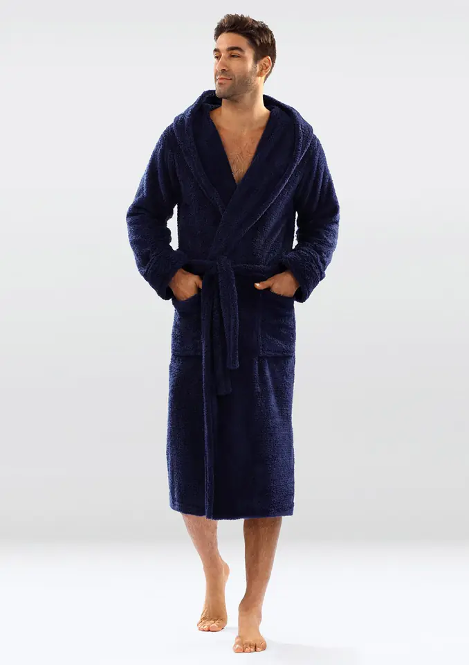 długi szlafrok Podomka 130z miękkiej puchowej lamyPuchowy materiałSzlafrok posiada kaptur oraz dwie kieszenie w wielu kolorachSzlafrok męski czarnySzlafrok męskiprezent dla mężczyzny| Kolor: | granat |