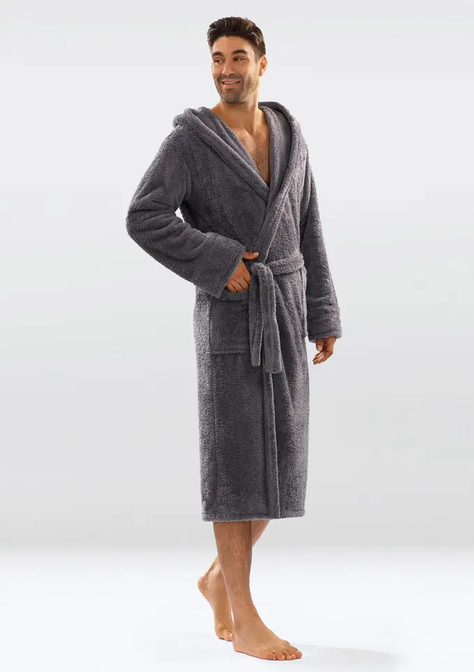 długi szlafrok Podomka 130z miękkiej puchowej lamyPuchowy materiałSzlafrok posiada kaptur oraz dwie kieszenie w wielu kolorachSzlafrok męski czarnySzlafrok męskiprezent dla mężczyzny| Kolor: | szary |