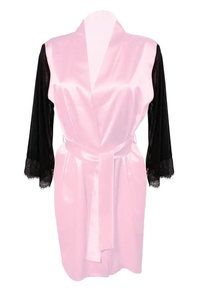 ELEGANCKI I NIEZWYKLE SEKSOWNY SZLAFROCZEK Z DELIKATNEJ SATYNY. TIULOWE RĘKAWY WYKOŃCZONE KORONKĄ, DODAJĄ MNÓSTWO PIKANTERII. PRAKTYCZNE WIĄZANIE W PASIE IDEALNIE DOPASOWUJE SIĘ DO SYLWETKI, UWYDATNIAJĄC ATUTY KOBIECEGO CIAŁA