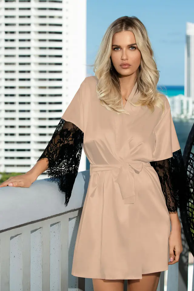 DELIKATNA DLA CIAŁA SATYNOWA PODOMKA. SZEROKIE RĘKAWY WYKOŃCZONE SUBTELNĄ KORONKĄ. PRAKTYCZNE WIĄZANIE W PASIE IDEALNIE DOPASOWUJE SIĘ DO SYLWETKI, UWYDATNIAJĄC ATUTY KOBIECEGO CIAŁA.