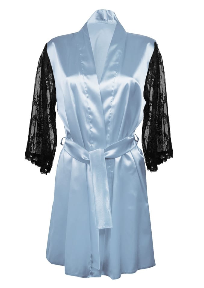 PRZYJEMNY, ELEGANCKI SATYNOWY SZLAFROK. WYKOŃCZONY DŁUGIMI RĘKAWAMI Z DELIKATNEJ KORONKI. PRZEPLATANY PASKIEM SATYNOWYM, KTÓRY IDEALNIE DOPASOWUJE SIĘ DO SYLWETKI, UWYDATNIAJĄC ATUTY KOBIECEGO CIAŁA. WERSJA KOLORYSTYCZNA: WSZYSTKIE WERSJE KOLORYSTYCZNE (CZARNA KORONKA).
