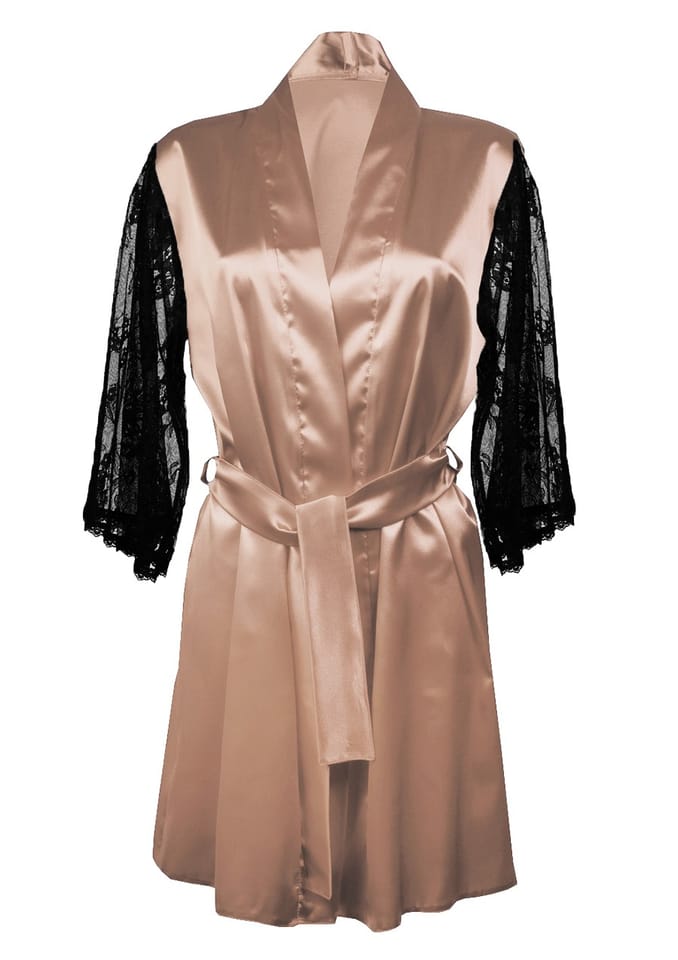 PRZYJEMNY, ELEGANCKI SATYNOWY SZLAFROK. WYKOŃCZONY DŁUGIMI RĘKAWAMI Z DELIKATNEJ KORONKI. PRZEPLATANY PASKIEM SATYNOWYM, KTÓRY IDEALNIE DOPASOWUJE SIĘ DO SYLWETKI, UWYDATNIAJĄC ATUTY KOBIECEGO CIAŁA. WERSJA KOLORYSTYCZNA: WSZYSTKIE WERSJE KOLORYSTYCZNE (CZARNA KORONKA).