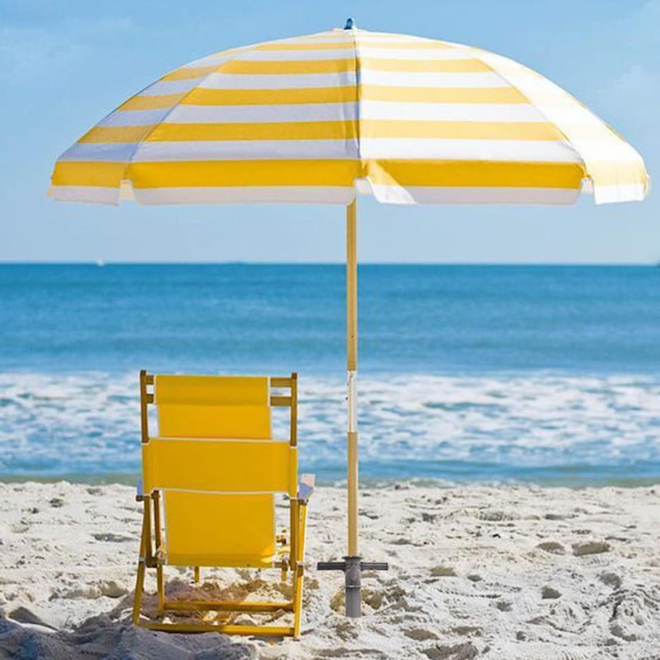 Wkręcana baza zapewnia solidne i stabilne mocowanie parasola, co minimalizuje ryzyko przewrócenia się nawet przy silnym wietrze. Długi i szeroki szpikulec pozwala mocno przytwierdzić bazę do piasku zwiększając jej stabilność.