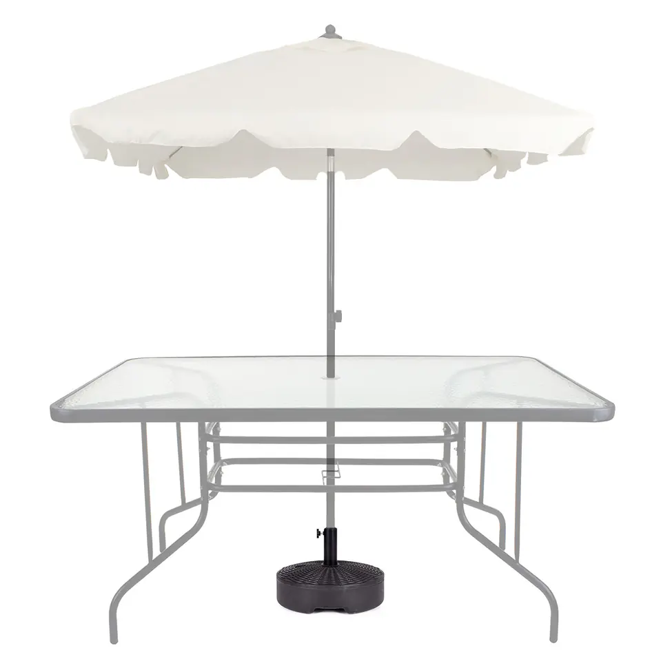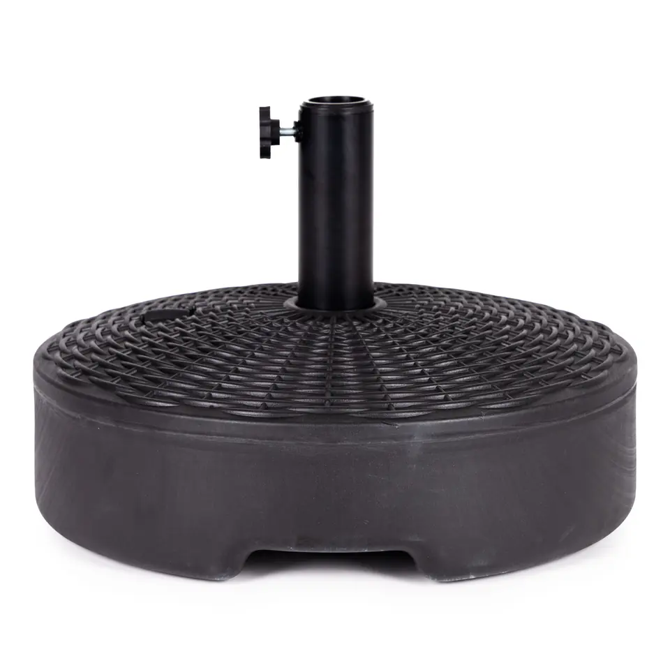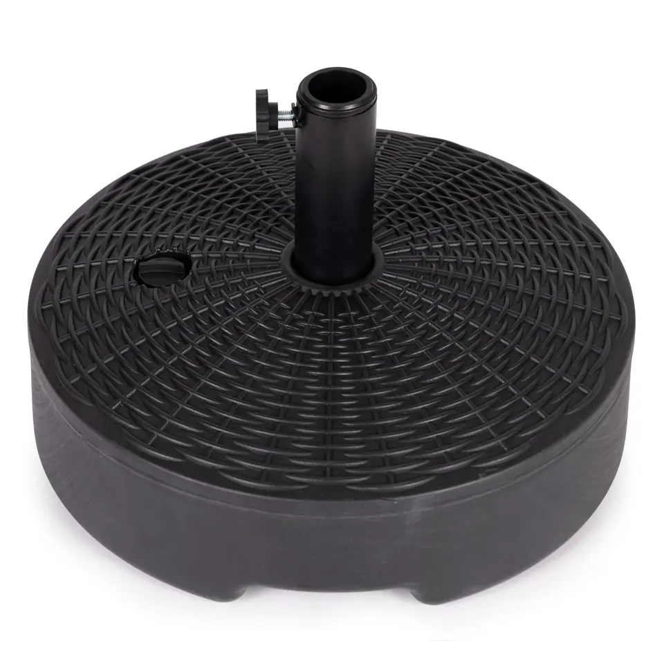 W górnej części podstawy znajduje się odkręcany korek, po jego wykręceniu należy napełnić podstawę wodą. Obciążenie będzie ważyć wtedy ok. 22 kg, co zapewni idealną stabilizację parasola.