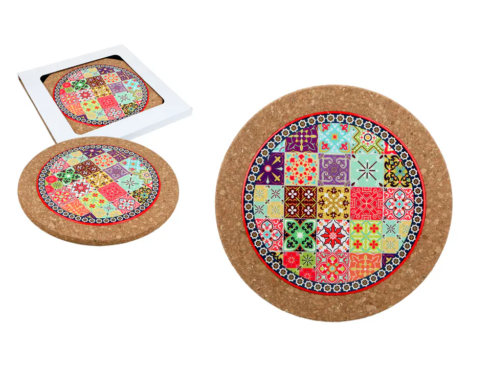 Dekoracyjna korkowa podstawka z płytką ceramiczną,pod gorący garnek czy