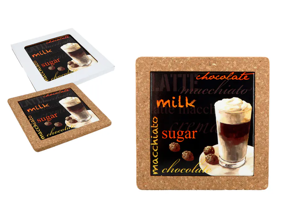 Dekoracyjna korkowa podstawka z płytką ceramiczną,pod gorący garnek czy