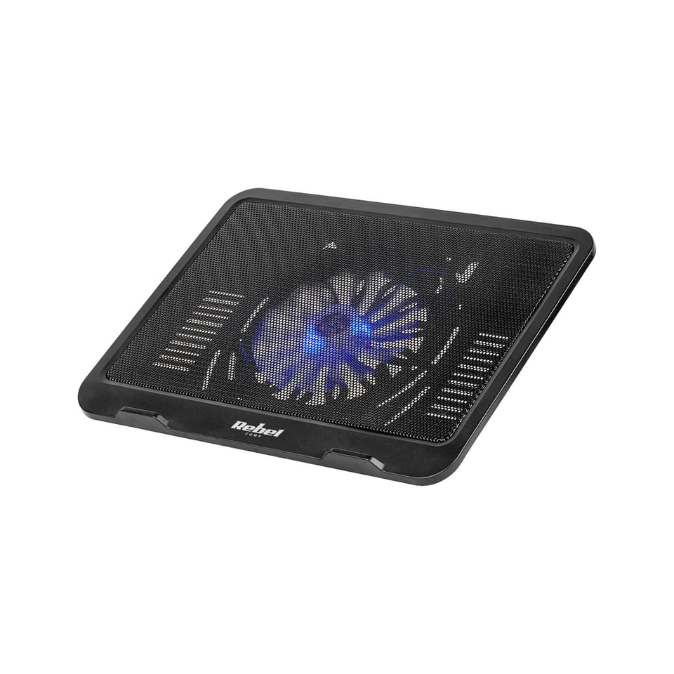 Podstawka pod laptopa z wentylatorem o średnicy 125 mm charakteryzuje się bardzo cichą pracą ? poziom głośności to tylko 10 dB. Co ważne, akcesorium to zostało wyposażone w port USB, dlatego pomimo tego, że jest zasilana przez USB, nie zmniejszy funkcjonalności Twojego laptopa. Podkładka chłodząca z serii Rebel nie tylko przedłuży żywotność Twojego komputera, ale będzie także stanowiła doskonałe doposażenie Twojego biura pod względem estetycznym. Czarna, smukła konstrukcja została uzupełniona o niebieskie podświetlenie wentylatora, które nada podstawce nowoczesnego wyglądu.