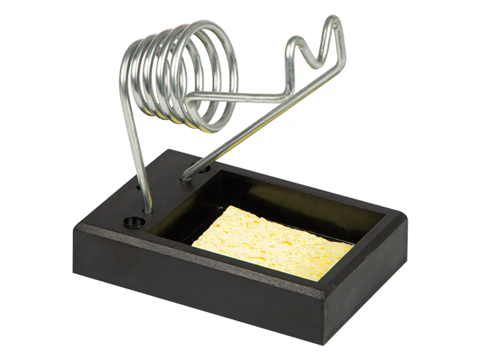 Wysokiej jakości podstawka pod lutownicę pasująca do większości lutownic oporowych. W podstawce znajduje się gąbka umożliwiająca czyszczenie grota lutownicy. Konstrukcja podstawki wspomaga utrzymanie temperatury grota oraz właściwe odprowadzanie ciepła. Odpowiednio opracowany stojak zapewnia stabilność odłożonej lutownicy.