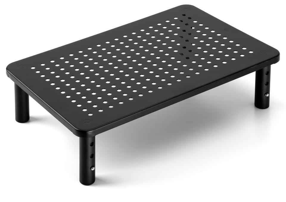 Regulowana podstawka MULING pod monitor laptop czarnaKolor: czarny mat Podstawka pod monitor Muling to stylowe i funkcjonalne rozwiązanie, które pomoże Ci zoptymalizować pracę przy biurku. Dzięki swoim zaawansowanym cechom, ta czarna podstawa zapewnia nie tylko estetyczny wygląd, ale również praktyczne rozwiązania.Najistotniejszą cechą podstawki Muling jest możliwość regulacji wysokości. Zaprojektowana z myślą o wygodzie użytkownika, podstawa posiada trzy poziomy regulacji, które umożliwiają dostosowanie monitora do optymalnej pozycji względem oczu. Dzięki temu unikniesz bólu pleców i szyi, zapewniając sobie komfortową pracę przez długie godziny.Podstawa pod monitor Muling została także wyposażona w dziurkowaną podstawę. Ta perforowana powierzchnia ma na celu poprawę wentylacji pod monitorem lub laptopem. Dzięki temu unikniesz przegrzewania się sprzętu, a jednocześnie utrzymasz odpowiednią temperaturę wokół niego. Wentylacja zapewnia lepsze działanie monitora i dłuższą żywotność sprzętu.Dodatkowym atutem tej podstawki pod monitor jest jej metalowa konstrukcja. Wykonana z trwałego materiału, podstawa jest stabilna i solidna. Dzięki temu możesz być pewien, że Twój monitor jest bezpieczny i stabilnie umieszczony na biurku.Podsumowując, podstawka pod monitor Muling to doskonały produkt, który łączy funkcjonalność, estetykę i wygodę. Czarna podstawa z możliwością regulacji wysokości, dziurkowaną podstawą i metalową konstrukcją stanowi idealne rozwiązanie dla każdego, kto szuka efektywnego sposobu organizacji miejsca pracy i dbałości o swój sprzęt komputerowy. Wybierz podstawkę Muling i ciesz się lepszym komfortem pracy przy biurku. Specyfikacja:Odpowiednia pod laptopy oraz monitoryRegulowana - 3 stopnie wysokościStabilne, antypoślizgowe nóżkiPerforowana podstawka w celu lepszej wentylacjiPodstawka wykonana z metalu, szuflada z tworzywa sztucznegoModny, biały kolor Wymiary:Wysokość regulowana: 10 cm, 12 cm, 14 cmSzerokość: 37 cmGłębokość: 23,5 cm Zalety użytkowania:Pomaga zachować odpowiednią postawę przy komputerzeZapobiega bólom pleców i szyiOtwarta przestrzeń pod spodem pozwala zaoszczędzić miejsce na biurkuWygodne użytkowanie niemal wszystkich monitorów, tabletów, telefonów Dlaczego warto stosować podstawki pod monitor?Głównym czynnikiem przyczyniającym się do złej postawy jest niewłaściwe ustawienie ekranu komputera, ponieważ to on determinuje naszą ogólną pozycję. To w jego kierunku kierujemy nasz wzrok i naturalnie odwracamy całe nasze ciało. Jeżeli monitor jest nieprawidłowo ustawiony np. zbyt wysoko lub zbyt nisko; nasza głowa, a co za tym idzie - także szyja i cały kręgosłup zmienia ustawienie. Długotrwała, nieprawidłowa pozycja może z czasem powodować ból, dyskomfort i długotrwałe problemy zdrowotne. Pracując przy źle ustawionym monitorze możesz także nadmiernie obciążać oczy, co negatywnie wpływa na samopoczucie, energię i wydajność.Decydując się na podstawkę pod monitor możesz zmniejszyć ryzyko wystąpienia negatywnych skutków pracy siedzącej. Uchwyt pozwala na większą dowolność wyboru pozycji monitora, zwłaszcza gdy decydujesz się na zwiększenie stanowiska pracy o więcej jak tylko jeden monitor. Uniesienie ekranu komputerowego sprawi, że na biurku nagle jest dużo więcej miejsca. Antypoślizgowe przykręcane nóżkiNóżki, wykonane są z metalu zapewniając doskonałe wsparcie dla blatu. Dla zapewnienia większej stabilności nóżki wzbogacone są o antypoślizgowe podkładki, co zapobiega przypadkowemu przesunięciu się podstawki. 3 - stopniowa regulacja wysokościStojak na monitor zapewnia elastyczny, ergonomiczny kąt widzenia z trzema regulowanymi wysokościami 10 cm / 12 cm / 14 cm, odciąża kark i ramiona. Perforowana podstawa dla lepszej wentylacjiPerforowana powierzchnia ma na celu poprawę wentylacji pod monitorem. Dzięki temu unikniesz przegrzewania się sprzętu, a jednocześnie utrzymasz odpowiednią temperaturę wokół niego. Wentylacja zapewnia lepsze działanie monitora i dłuższą żywotność sprzętu. UWAGA | Przedstawione kolory należy traktować poglądowo - mogą odbiegać od rzeczywistych ze względu na różne ustawienia monitorów oraz proces obróbki zdjęć • Rzeczywiste wymiary mogą się nieznacznie różnić od podanych w opisie. Tolerancja błędów może wynosić +/- 2 cm
