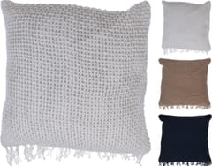 PODUSZKA, ROZMIAR 45X45CM. BAWEŁNIANA DZIANINA Z FRĘDZLAMI, JEDNOLITY PŁÓD, W 3 KOLORACH, Z ZAMKIEM, ETYKIETĄ PRANIA I BIAŁYM ZAWIESZKĄ HS. PAKOWANE PRÓŻNIOWO, ZESP.: 3 kolory (Ciemnoniebieski/Biały/Brązowy)/ 450X450X35MM, Folia termokurczliwa / CFT 3,06 (9.500/40 stóp HQ)