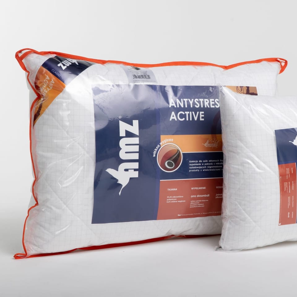 PODUSZKA ANTYSTRES ACTIVE 70x80 Kolekcję Antystres Active pokrywa mikrofibra wzbogacona dodatkiem włókien węglowych. Włókna węglowe absorbują i neutralizują ładunki elektryczne nagromadzone na ludzkim ciele, niwelując stres i napięcia mięśniowe. Umysł oraz ciało uspokajają się, sen staje się głębszy i bardziej efektywny dodając nam sił i energii na nowy dzień.