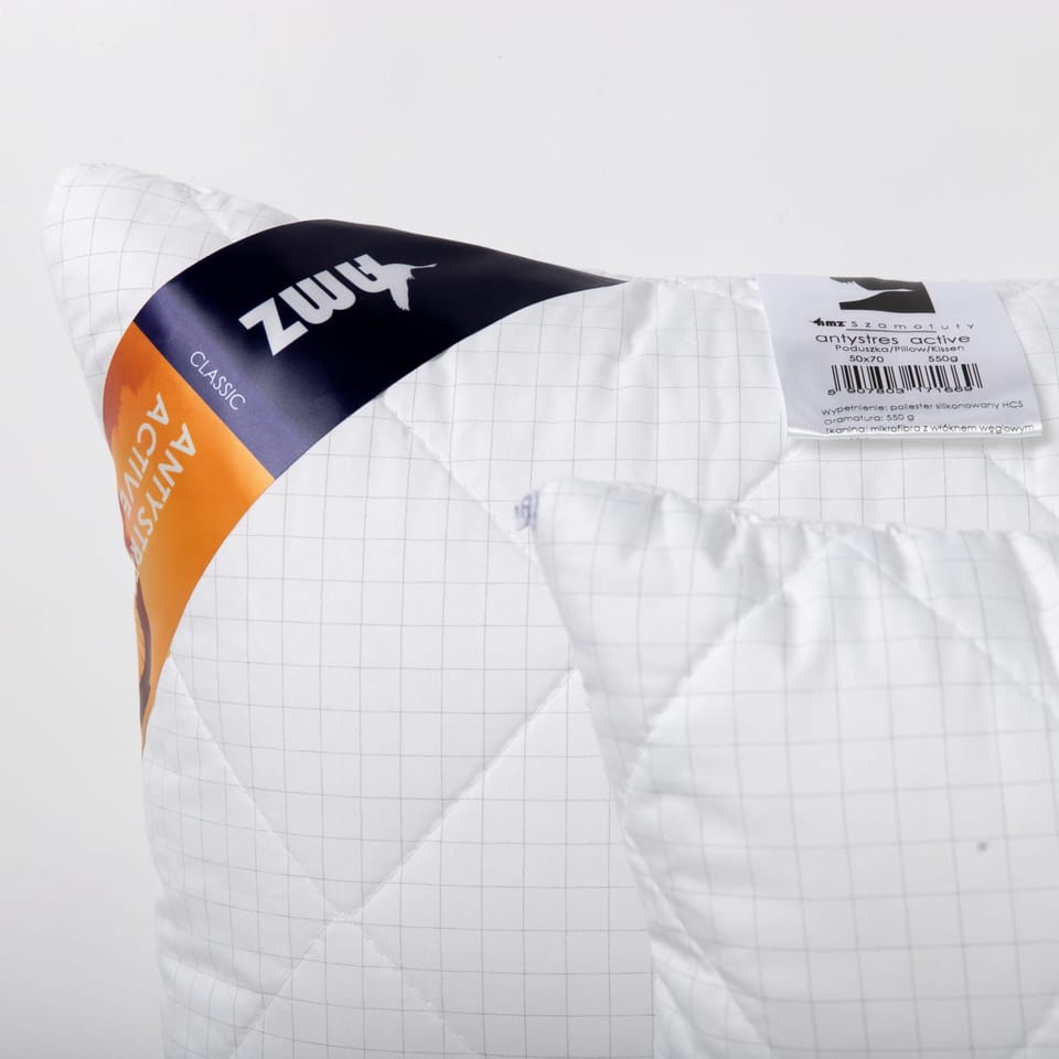 PODUSZKA ANTYSTRES ACTIVE Kolekcję Antystres Active pokrywa mikrofibra wzbogacona dodatkiem włókien węglowych. Włókna węglowe absorbują i neutralizują ładunki elektryczne nagromadzone na ludzkim ciele, niwelując stres i napięcia mięśniowe. Umysł oraz ciało uspokajają się, sen staje się głębszy i bardziej efektywny dodając nam sił i energii na nowy dzień.