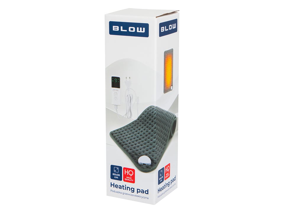 Poduszka elektryczna grzejąca, pilot z odpinającym kablem zasilającym, instrukcja obsługi w języku polskim i angielskim, ładne opakowanie