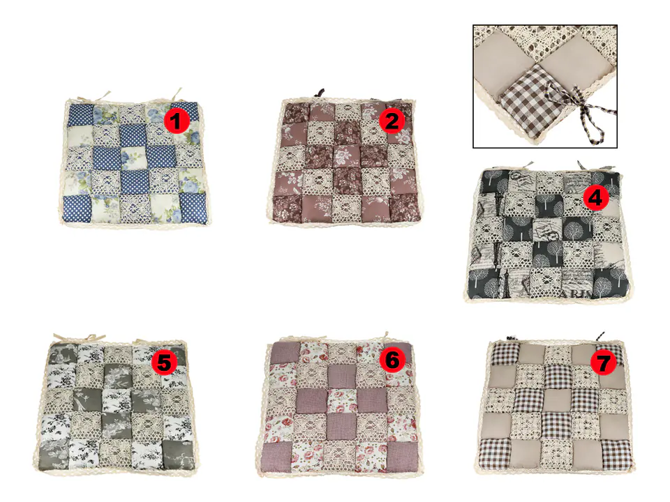 Poduszka na krzesełko - motyw kwadracików z koronką