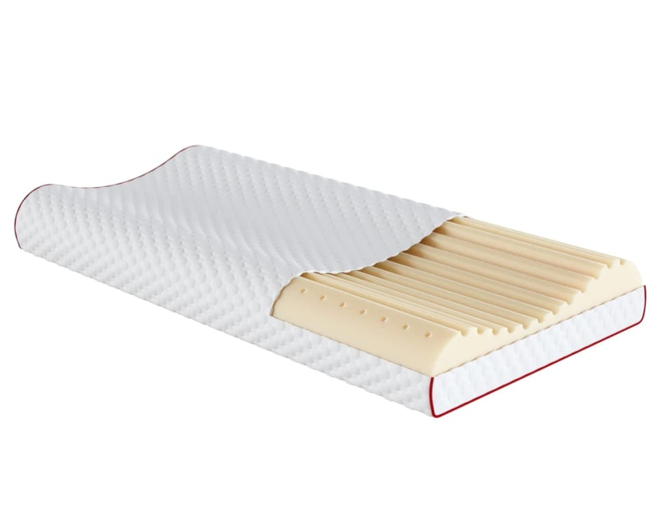 Poduszka lateksowa profilowana NUBIA POINT Dzięki ergonomicznemu podparciu poduszka skutecznie redukuje napięcie mięśniowe, wspierając regenerację po ciężkim dniu. NUBIA POINT to ergonomiczna, profilowana poduszka lateksowa zaprojektowana tak, by utrzymywać kręgosłup szyjny w naturalnej pozycji przez całą noc. Fala wyprofilowania oraz podłużne nacięcia sprawiają, że głowa i kark delikatnie „wpadają” w poduszkę, a lateks natychmiast reaguje na każdy ruch – bez efektu zapadania się. Dzięki temu mięśnie mogą się rozluźnić, a Ty budzisz się wypoczęty, bez bólu i napięć.