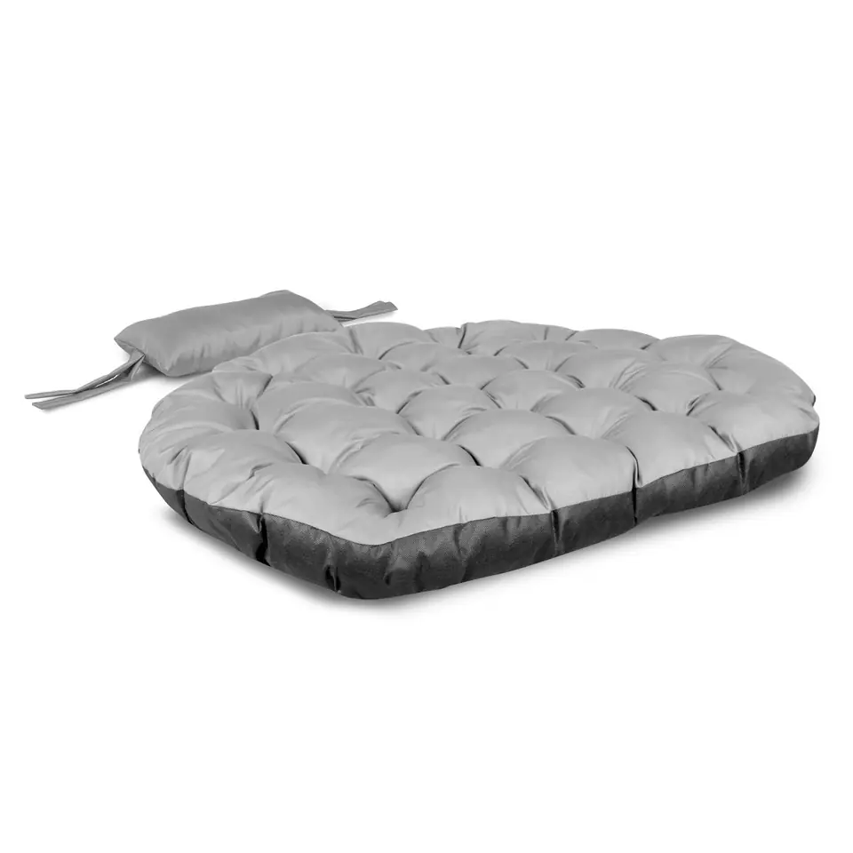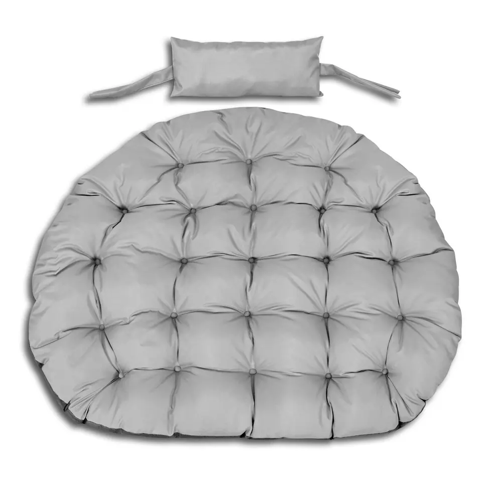 Zestaw zawiera- Poduszka ogrodowa szara bocianie gniazdo- Zagłówek wiązany na sznurki* Uwaga: widoczne na zdjęciu poglądowym krzesło wiszące nie jest przedmiotem tej oferty.