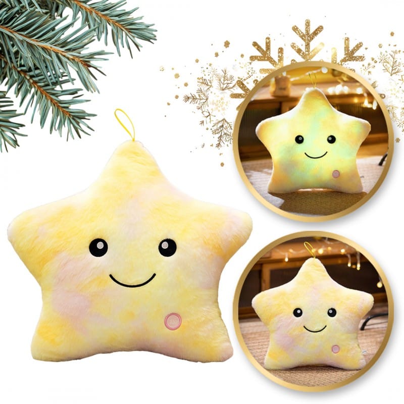 Poduszka w kształcie Świątecznej Gwiazdki LED W przedświątecznym okresie pełnym przygotowań każdemu przyda się chwila wytchnienia.Miękka i przyjemna w dotyku poduszka zapewni wygodę i pozwoli odprężyć się w domowym zaciszu.Poduszka posiada wbudowane wewnątrz światełka LED, które migają po uruchomieniu. Brak baterii w zestawie. Wymiary:40 x 35 cm Waga:280g Materiał:100% poliester