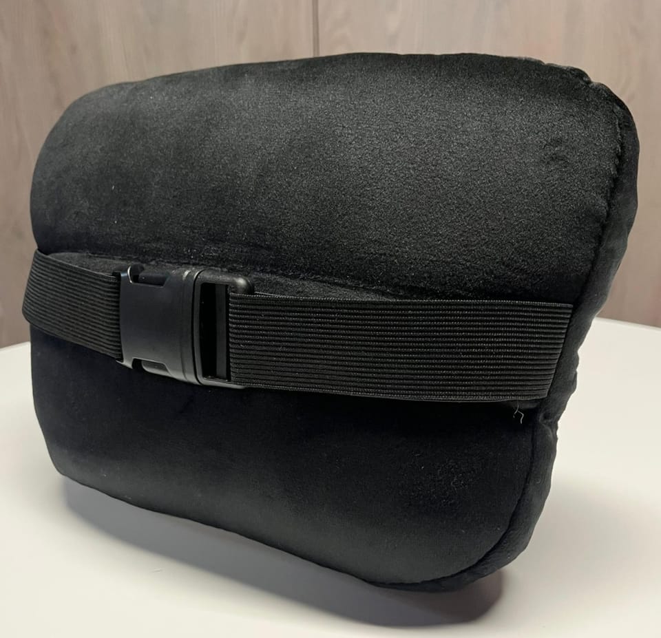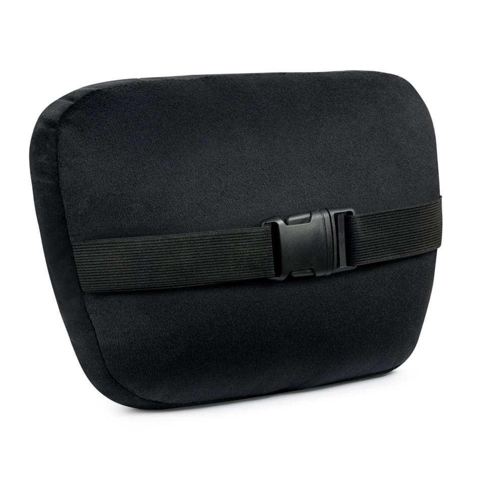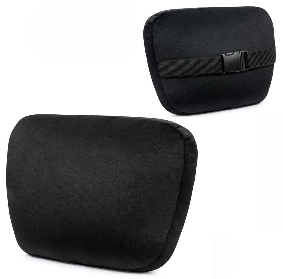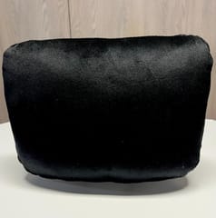 Poduszka zagłówkowa w kolorze czarnym, wykonana z miękkiego welurowego materiału. Ergonomiczny kształt zapewnia stabilne podparcie szyi i pleców, poprawiając komfort podczas siedzenia i podróży.