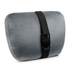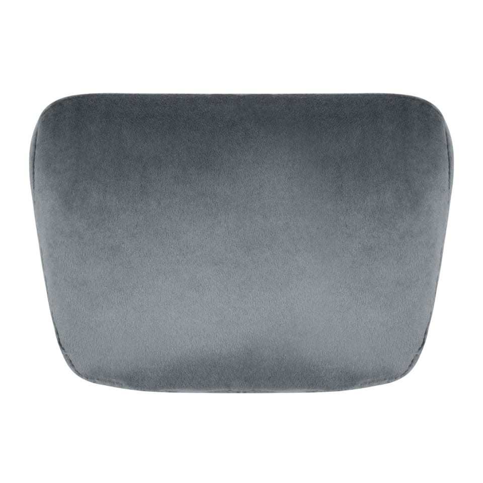 Poduszka zagłówkowa w kolorze szarym, wykonana z miękkiego welurowego materiału. Ergonomiczny kształt zapewnia stabilne podparcie szyi i pleców, poprawiając komfort podczas siedzenia i podróży.