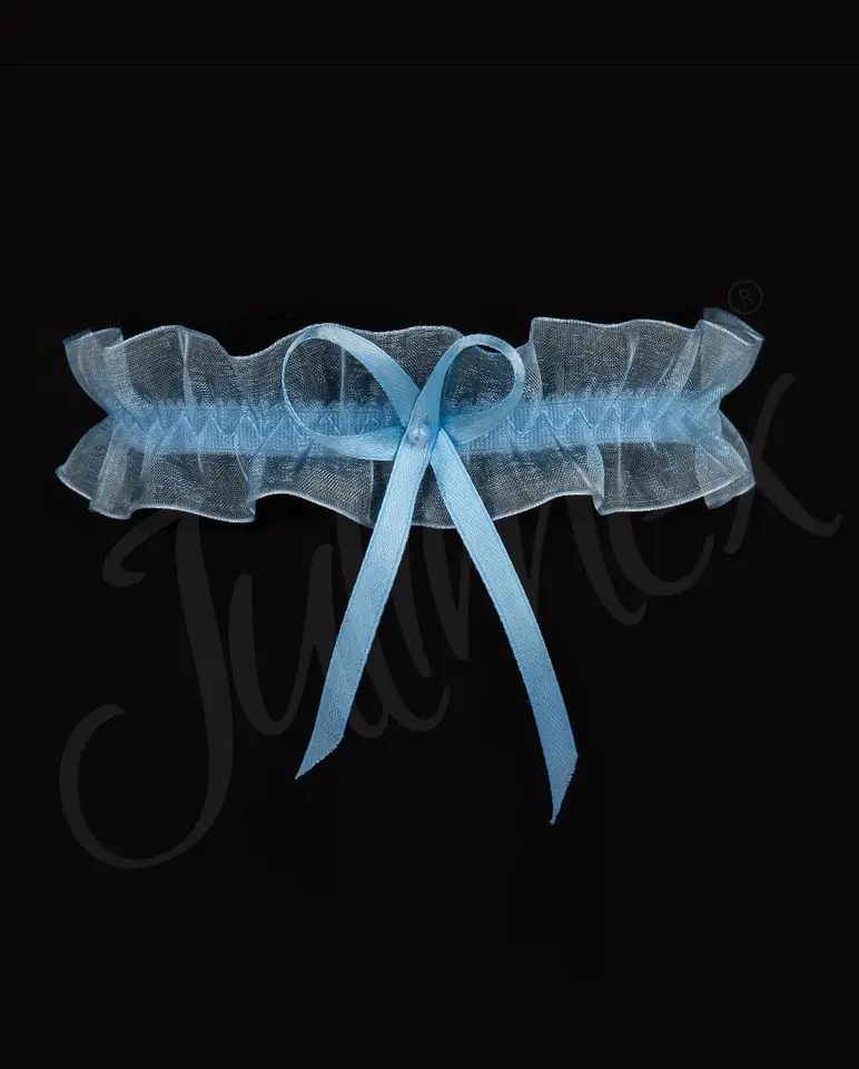 Delikatna podwiązka, wykonana z tiulu zdobiona subtelną kokardką. Pięknie ozdobi udo. Elastyczna gumka zapewni komfort i przytrzyma podwiązkę na miejscu.