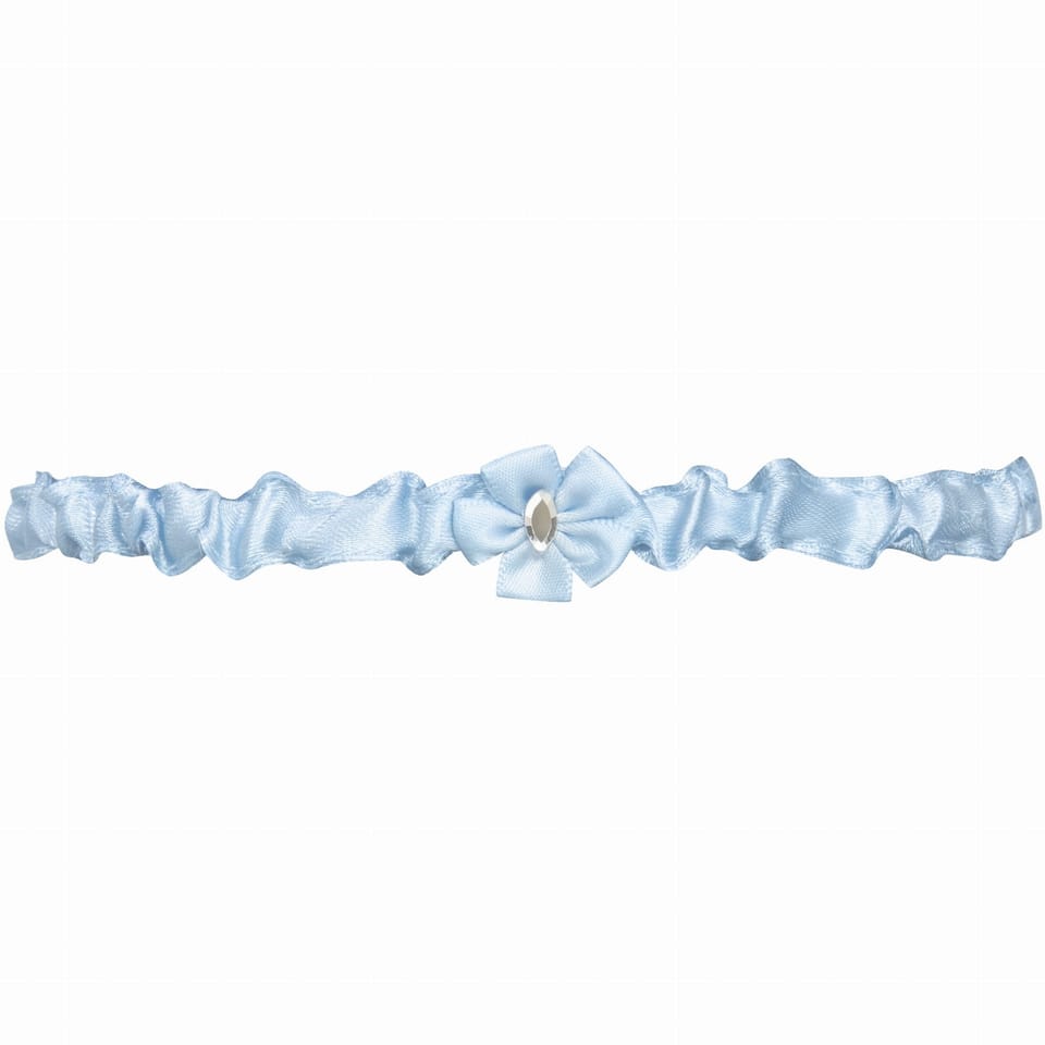 Śliczna podwiązka damska wykonana z delikatnej satyny, ozdobiona satynowym kwiatkiem z cyrkonią. Skład:100% poliester.