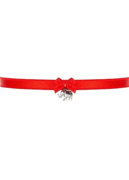 Podwiązka z szyfonu i satynowej taśmy, zdobiona wstążeczką ze srebrnym słonikiem- na szczęście. Doskonały wybór na studniówkę.