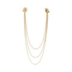 Olśniewający detal, który nada Twojej stylizacji wyjątkowego charakteru! Ta podwójna broszka w kształcie oczu, bogato zdobiona lśniącymi kryształkami i subtelnymi perełkami, to połączenie elegancji i artystycznego stylu. Dwa elementy połączone różnorodnymi łańcuszkami tworzą efektowną kompozycję, idealną do przypięcia na marynarce, koszuli, swetrze czy płaszczu.