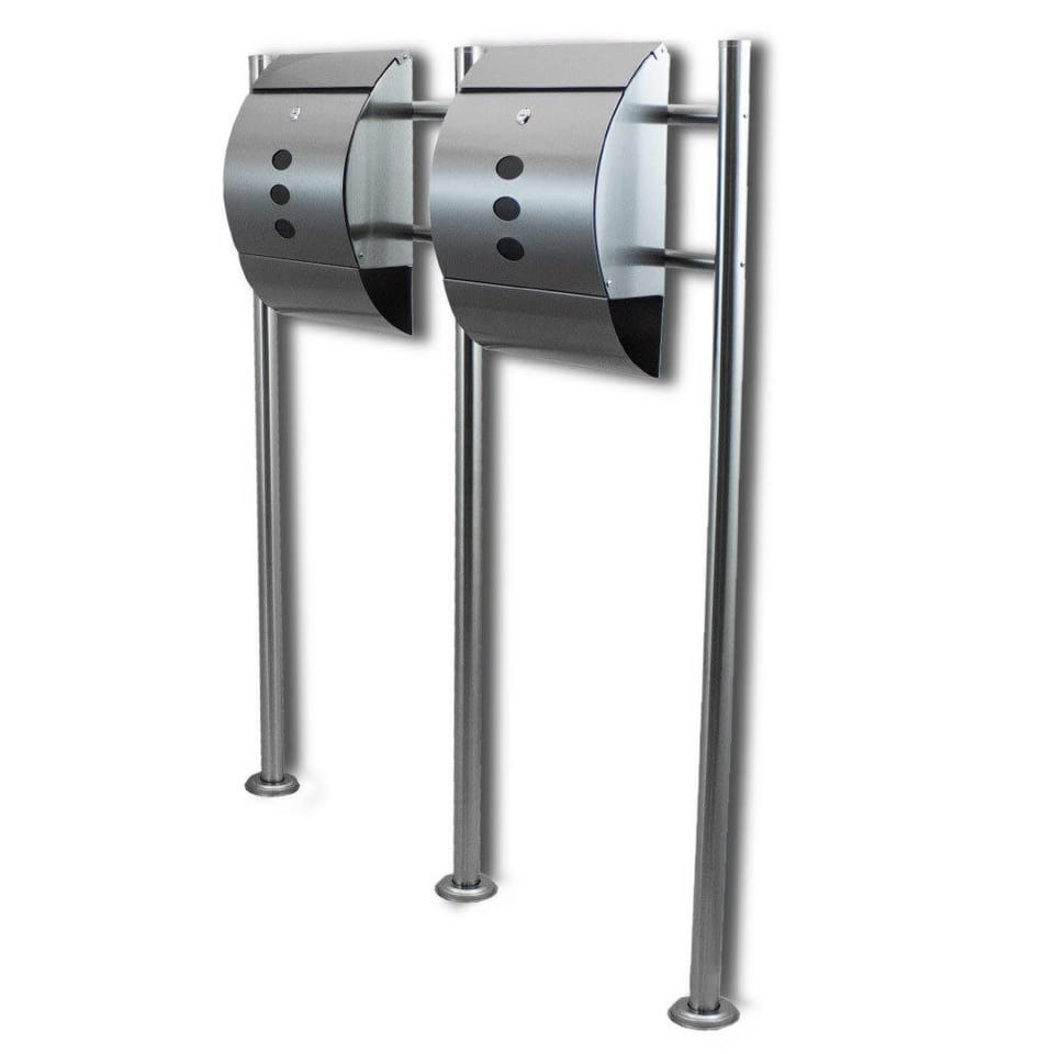 PODWÓJNA SKRZYNKA NA LISTY WOLNOSTOJĄCAPodwójna skrzynka na listy Skrzynka pocztowa jest zamykana i dużaPojemność odpowiednia również dla firm. Dzięki dużemu otworowi skrzynka pocztowa jest optymalnie obsługiwana. Dostawa obejmuje 3 stojaki, 2 rozpórki krzyżowe, elementy montażowe i dwa klucze.Właściwości: - Metalowy chromowany stojak na listy, wygląd stali nierdzewnej - Zamek - Zintegrowany przedział na gazety - 3 okna podglądu - 3 stojaki i 2 poprzeczne pręty z metalu stopu chromu - Dołączony sprzęt montażowy Dane techniczne Wymiary: 100cm x 120m x 10cm (B / H / D) Wymiary skrzynki pocztowej: 31 cm x 40 cm x 12 cm (B / H / D) Wymiary przedziału na gazety: 30 cm x 10 cm x 9 cm (B / H / D) Wymiary wrzutowe: 30 cm x 3 cm (B / H / D) Wysokość stojaka: 1,20m Średnica stojaka: 4 cm Materiał: metal Waga: 6,90 kg Dostawa - 2x skrzynka pocztowa - 3x stojak - 2x rozpórki krzyżowe - 2x klucze na skrzynkę pocztową - Materiał montażowy