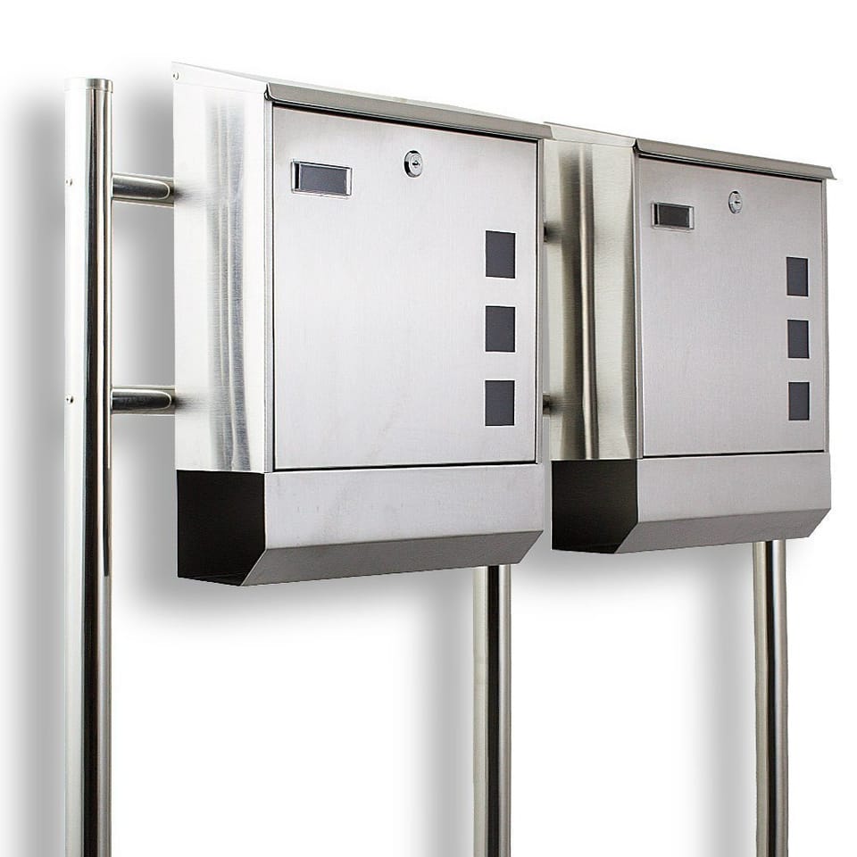 PODWÓJNA SKRZYNKA POCZTOWA ZE STALI NIERDZEWNEJ + STOJAKI
