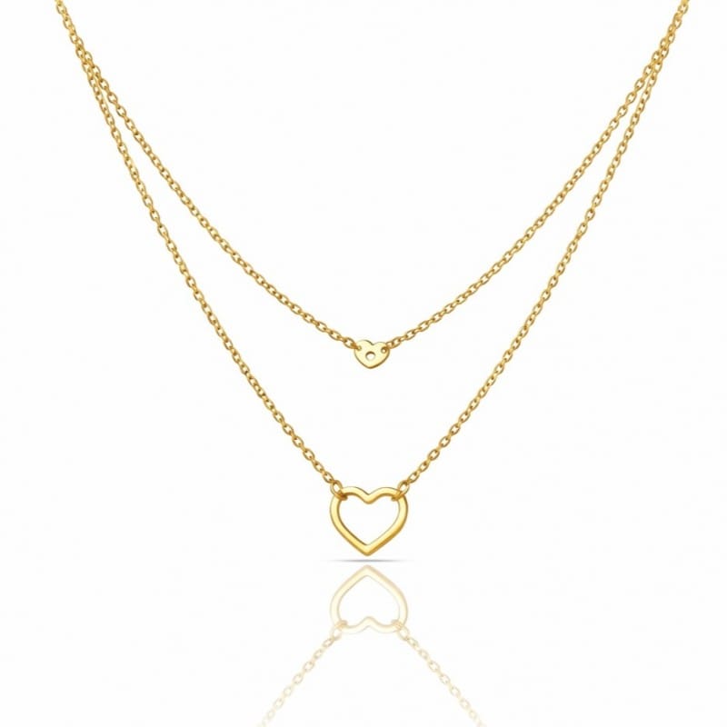 Podwójny naszyjnik stal szlachetna pozłacana 14k złotem SERCA NST2244