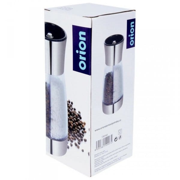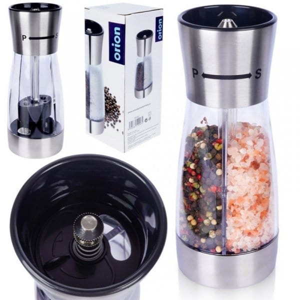 Ręczny, podwójny młynek, pozwoli na osobne zmielenie dwóch różnych przypraw w jednym urządzeniu. Wystarczy przekręcić młynek, aby doprawić potrawę świeżo mieloną przyprawą. Podwójny młynek jest idealny do pieprzu oraz soli. Sprawdzi się także do innych przypraw. Niezbędny zestaw w każdej kuchni. Łatwy w czyszczeniu i użytkowaniu. Młynek, dzięki przezroczystej formie dobrze komponuje się z pozostałą zastawą. Świetnie sprawdzą się w lokalach gastronomicznych. Ręczny młynek jest zawsze sprawdzonym pomysłem na prezent np. z okazji parapetówki. Oryginalny produkt czeskiej marki Orion. Wyprodukowano zgodnie z europejskimi standardami.
