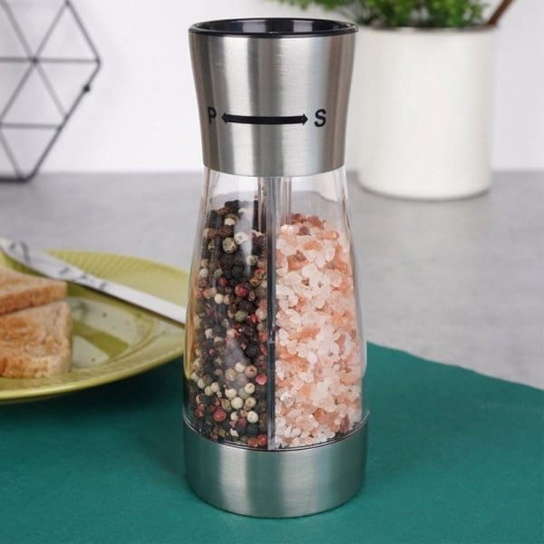 - WYGODNY - Podwójny młynek jest wygodny w użytkowaniu. Pozwala na mielenie dwóch różnych przypraw bez ich bezpośredniego łączenia. Wystarczy odpowiednio przekręcić górną część młynka w celu skorzystania z drugiej przyprawy. Nie trzeba kupować pojedynczych młynków. Odpowiednio wyprofilowany kształt sprawia, że młynek wygodnie i pewnie leży w dłoni, co zapewnia wygodną obsługę przy użyciu nawet jednej ręki.