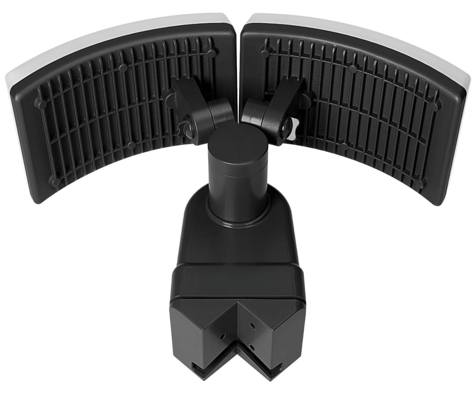AD-NL-6603BLR4 to podwójny naświetlacz 2x20W (2x1600 lm, 4000K) z czujnikiem PIR, który automatycznie włącza światło tylko wtedy, gdy trzeba. Ruchome klosze (regulacja 90°/135°) pozwalają precyzyjnie kierować światło, a IP65 i IK10 gwarantują odporność. Regulacja czasu, zasięgu i progu LUX ułatwia dopasowanie pracy do otoczenia.