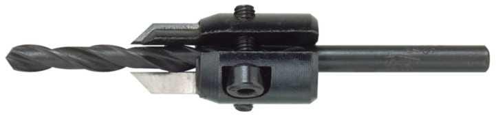 Z dwoma ostrzami z węglików spiekanych. Do mocowania na wiertłach walcowych. Dzięki temu wiercenie i pogłębianie odbywa się w jednej operacji. Kąt stożka pogłębienia 90°.