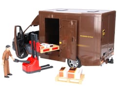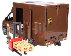 Świetnie odwzorowany model samochodu kurierskiego firmy UPS wraz z samą postacią kuriera, paczkami oraz paleciakiem. Atutem zabawki jest, że Sprinter został odwzorowany w nowej odsłonie Mercedesa i właśnie taki model będzie najczęściej spotykanym pojazdem tej firmy na ulicach.