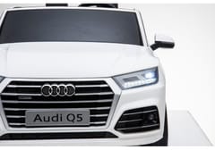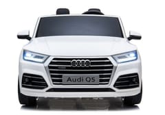 Znane wszystkim Audi Q5 jest samochodem, które przyciąga uwagę każdego — łączy w sobie dynamikę, styl i komfort najwyższej jakości. Detale pojazdu, które cieszą się największą popularnością, to wąska linia delikatnie przyciemnianych szyb oraz szeroki, duży grill. Klasyczne, dwuosobowe białe Audi Q5 dla dzieci zasilane jest akumulatorem, posiada oryginalną licencję koncernu, dzięki czemu zdobi je logo producenta w przedniej i tylnej części oraz na kierownicy.