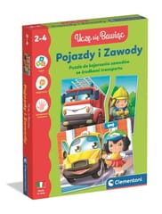 Edukacyjna gra najwyższej jakości opracowana z myślą o najmłodszych dzieciach. Opakowanie zawiera 6 dwuelementowych układanek przedstawiających środki transportu i zawody. Dzięki sympatycznym i kolorowym ilustracjom dzieci\npoznają środki transportu i zawody, rozwijając przy tym zdolności manualne, a także umiejętność logicznego myślenia i zmysł obserwacji.