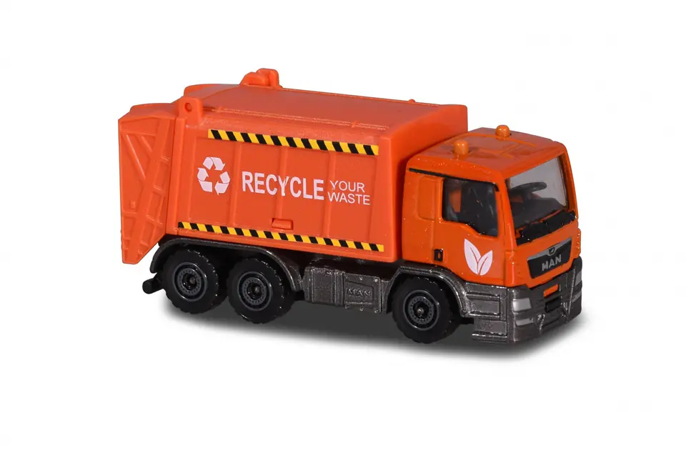 Metalowe pojazdy miejskie, dostępne marki: MAN, Renault, Mercedes Benz, Porsche, bez napędu, ruchome elementy.