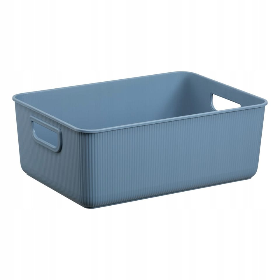 Cechy- Pojemność 10 litrów – kompaktowa i idealna do przechowywania- Wygodne uchwyty ułatwiające przenoszenie- Wykonany z materiału pochodzącego z recyklingu- Odpowiedni do organizacji domowych akcesoriów, środków czystości, zabawek i drobiazgów- Kolor: niebieski
