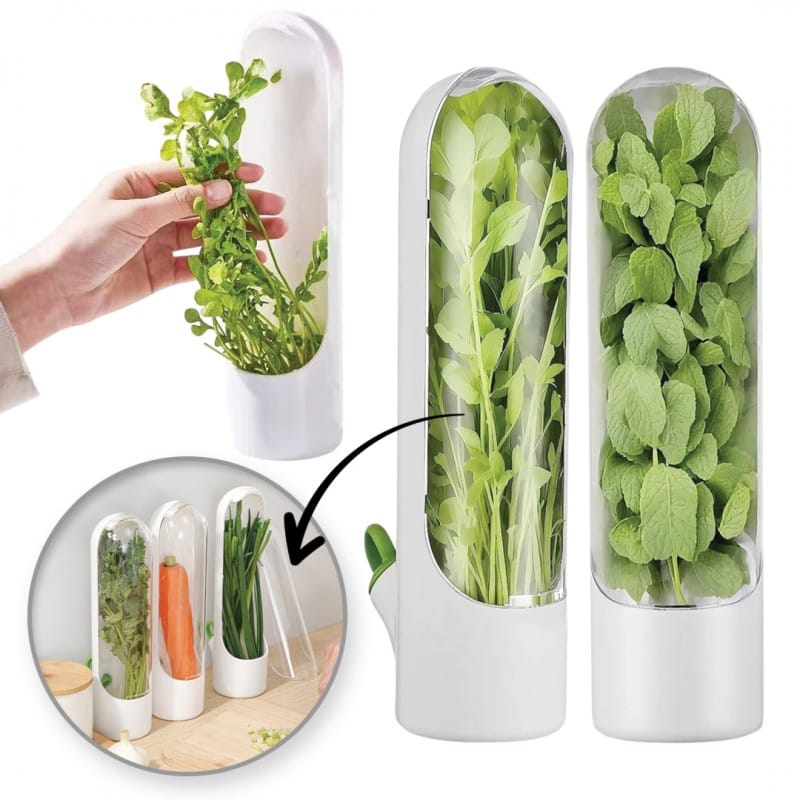 POJEMNIK NA ŚWIEŻE WARZYWA, ZIOŁA DO LODÓWKIPojemnik ma dobrą wodoszczelność, pomaga utrzymać odpowiednią wilgotność ziół i warzyw przedłużając ich świeżość. Sposób użycia:Opłucz i wysusz wybrane zioła (np. bazylię, miętę, szczypiorek itp.) i umieść je w kapsułce do przechowywania ziół.Zamknij przednią pokrywę, aż usłyszysz kliknięcie.Dodaj świeżą wodę do zbiornika przez zdejmowany korek wlewu.Upewnij się, że korzenia są zanurzone w wodzie, aby uzyskać maksymalną skutecznośćUwaga: Aby uzyskać najlepsze rezultaty, pamiętaj o wymianie świeżej wody co 3-5 dni. Specyfikacja:- Idealny pojemniki do każdej lodówki-Pojemnik wielokrotnego użycia-Kolor: Biały/ przeźroczysty- Materiał: tworzywo sztuczne.- Zapakowany w kartonowe pudełko Wymiary:25 x 6,5 cmWymiary opakowania:26 x 8,5 x 8,5 cmWaga:135g netto / 190g brutto