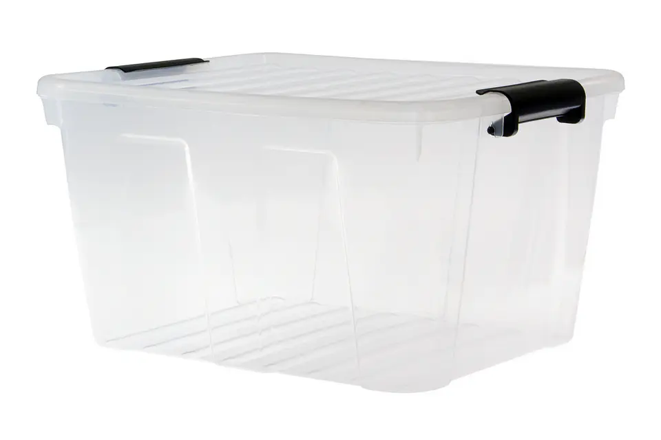 Do rowków na powierzchni pokrywki pasują idealnie wypustki znajdujące się na dnie pudła, co zapobiega przesuwaniu się pudeł ustawionych w stos.