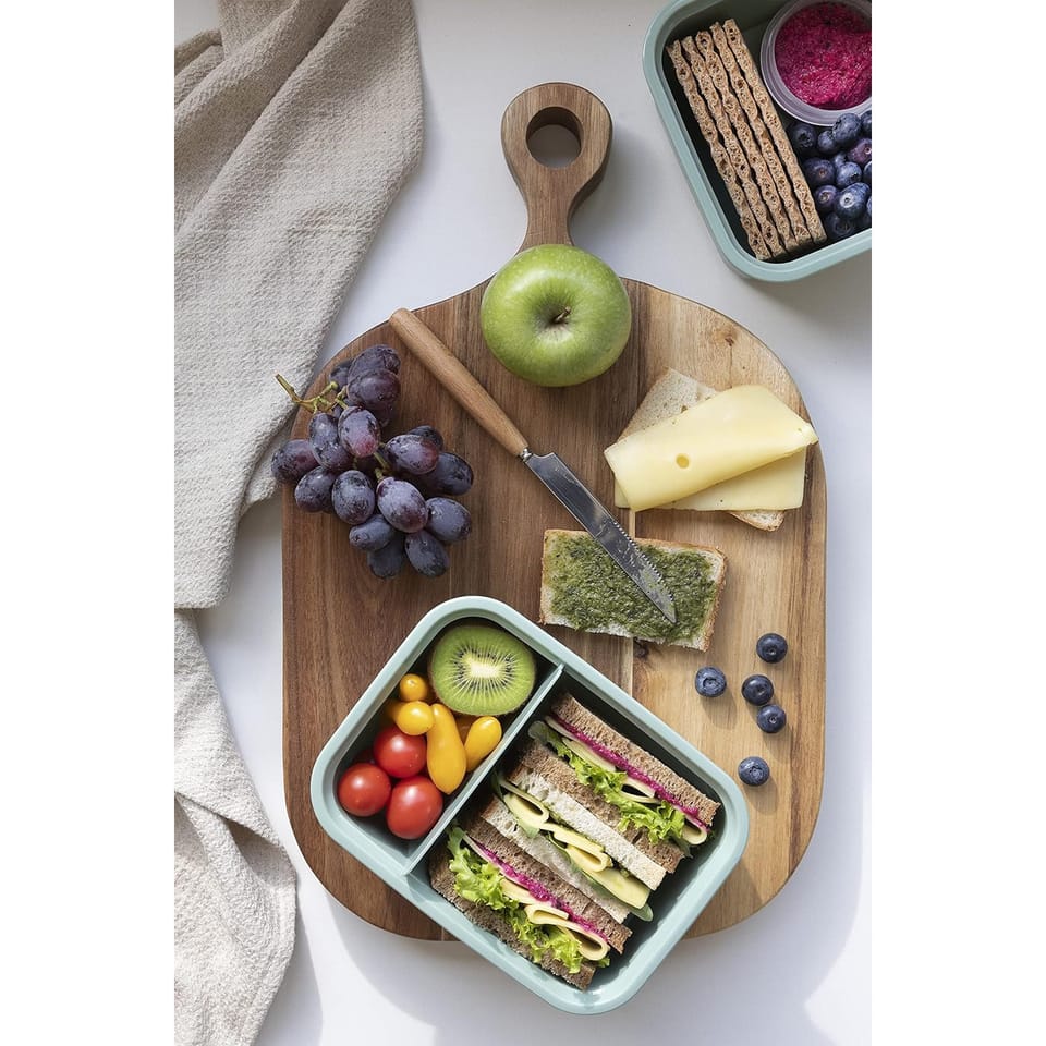 Cechy- Uszczelka w pokrywce oraz solidne zapięcia pomagają zachować świeżość żywności- Specjalny wentyl umożliwia podgrzanie posiłku w kuchence mikrofalowej bez konieczności zdejmowania przykrywki- Nadaje się do mycia w zmywarce oraz użytkowania w lodówce i zamrażarce- Wykonany z polipropylenu pochodzącego w 100% z recyklingu- Ekologiczny i bezpieczny dla zdrowia- Pojemność: 0,6+0,3L