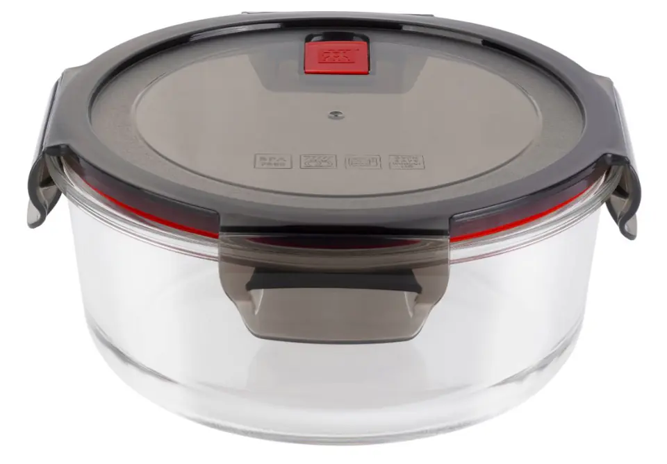 Jeden za wszystko: okrągły szklany pojemnik ZWILLING Gusto o pojemności 1.3 ltr będzie zawsze pod ręką, kiedy zajdzie potrzeba przechowania, przygotowania bądź też podania produktów spożywczych oraz posiłków. Można go używać nie tylko w lodówce, ale też w zamrażarce, a w celu podgrzania potraw, bez obaw włożyć go można do mikrofalówki czy piekarnika. Dzięki jego niepowtarzalnemu designowi prezentować się będzie doskonale zarówno z kuchennej szafce, jak i na wyeksponowanej półce.To, co nadaje temu wysokiej jakości pojemnikowi takiej wszechstronności i wytrzymałości, to mocne, odporne na temperaturę szkło, z jakiego został wykonany. Materiał ten, co niezwykle istotne przede wszystkim dla szczególnych smakoszy, nie ma smaku ani zapachu, a jego właściwości higieniczne sprawiają, że sprawdzi się również w przypadku delikatnych produktów.Specjalna pokrywa z tworzywa sztucznego pomaga na hermetyczne przechowywanie żywności, dzięki czemu nie pochłania ona zapachów z zewnątrz oraz zabezpieczona jest przed ewentualną wilgocią.Planują Państwo piknik bądź wycieczkę? Pojemnik ZWILLING Gusto doskonale sprawdzi się w roli transportera przekąsek. Sałatka makaronowa czy ryż z warzywami bez problemu przewiezione będą na miejsce wypoczynku, nie tracąc swojego początkowego smaku.Szklany pojemnik ZWILLING Gusto można wraz z pokrywką czyścić w zmywarce, dzięki czemu korzystanie z niego sprawia jeszcze większą przyjemność.