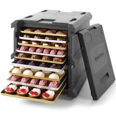 Kod produktu: 1030867Pojemnik termoizolacyjny cateringowy HENDI jest ultra-lekki, zamykany z przodu oddzielną pokrywą, zaprojektowany do efektywnego transportu i przechowywania żywności. Z 9 prowadnicami na tacki 600x400 mm, konstrukcją umożliwiającą piętrowanie i odpornością na wysokie temperatury, utrzymuje żywność w optymalnej temperaturze, zapewniając jednocześnie bezpieczne użytkowanie. Nadaje się do mycia w zmywarce w temperaturze do 80deg;C.Cechy produktu: