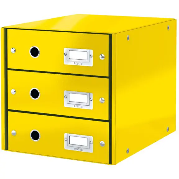 Pojemnik z 3 szufladami do przechowywania rzeczy w formatach do A4. Skladany w celu zaoszczedzenia miejsca, gdy nie jest uzywany.