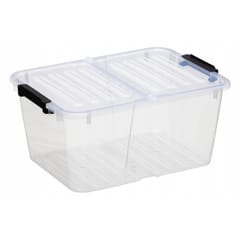 Cechy- Innowacyjna, składana pokrywa- Możliwość otwierania z lewej i prawej strony- Dwa mocne klipsy zapewniają pewne i szczelne zamknięcie- Przezroczysty materiał ułatwiający kontrolę zawartości- Wielofunkcyjne zastosowanie – do domu, biura, garażu czy pracowni- Pojemność 15 litrów - idealna do domowego i biurowego przechowywania