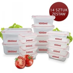Pojemniki do przechowywania żywności 14x Classbach C-FHD 4009 K SKU: 414009Classbach C-FHD 4009 K to zestaw składający się z 14 transparentnych pojemników z hermetycznym zamknięciem o zróżnicowanej pojemności i wymiarach. Są stworzone do przechowywania żywności, zarówno składników jak i całych dań. Pojemniki są również świetnym rozwiązaniem jeśli chcemy zabrać ze sobą ulubioną potrawę do pracy. Posiadają one hermetyczne zamknięcia Click & Safe, dzięki którym żywność nie będzie się wylewać ani wysypywać, co mogło by wpłynąć negatywnie na bezpośrednie otoczenie pojemnika czy świeżość przechowywanych potraw.Zestaw C-FHD 4009 K został wykonany w całości z wysokiej jakości tworzywa sztucznego, odpornego na temperaturę w zakresie -40 do +110°C. Możemy więc przechowywać je w zamrażarce, a także podgrzewać w nich potrawy przy użyciu kuchenki mikrofalowej. Tworzywo jest bezpieczne dla zdrowia i pozbawione szkodliwych substancji (BPA FREE)Pojemniki są niezwykle łatwe w utrzymaniu czystości - uszczelka jest demontowalna a całość możemy umyć przy pomocy zmywarki do naczyń.Najważniejsze cechy zestawu Classbach C-FHD 4009 K:Zestaw 14 pojemników na żywność do wszechstronnego zastosowaniaIdealny do zamrażania, podgrzewania, przechowywania oraz transportuPrzechowywanie żywności takiej jak przykładowo posiłki, sosy, warzywa, owoce, gofry czy jedzenie dla dzieciPozbawiony szkodliwego BPAPojemność: 2x 2600 ml4x 1000 ml4x 400 ml4x 240 mlUtrzymuje 100% szczelność dzięki praktycznemu zamknięciu Click & Safe oraz sylikonowej uszczelce w pokrywieŁatwa obsługaDługotrwała świeżośćDługotrwały aromatOdporność na temperaturę w zakresie –40 do +110°CZamrażarka do –40 °CKuchenka mikrofalowa do +110°CŁatwa obsługa i czyszczenie dzięki demontowalnej pokrywie i uszczelcePrzystosowany do mycia w zmywarceDlaczego warto kupić zestaw pojemników Classbach C-FHD ?Wielofunkcyjne14 pojemników o zróżnicowanych wymiarach i pojemności, przeznaczone do przechowywania żywności z hermetycznym zamknięciem - idealne do przechowywania żywności, zarówno składników jak i całych dańBezpieczne Hermetyczne zamknięcia Click & Safe, dzięki którym żywność nie będzie się wylewać ani wysypywać. Tworzywo jest bezpieczne dla zdrowia i pozbawione szkodliwych substancjiOdporne na temperaturęCharakteryzują się odpornością na temperaturę w zakresie -40 do +110°C. Możemy więc przechowywać je w zamrażarce, a także podgrzewać w nich potrawy przy użyciu kuchenki mikrofalowejŁatwe w czyszczeniuPojemniki są niezwykle łatwe w utrzymaniu czystości - uszczelka jest demontowalna a całość możemy umyć przy pomocy zmywarki do naczyńWymiary:Wymiary (ok. szer. x wys. x gł.) pojemnik + pokrywa:(2600 ml) 250 x 95 x 185 mm(1000 ml) 195 x 76 x 130 mm(400 ml) 165 x 48 x 115 mm(240 ml) 130 x 47 x 92 mmOpakowanie: 255 x 190 x 280 mmPojemniki wolne od BPACertyfikat BPA Free daje świadectwo, iż produkty są tworzone w trosce o Twoje zdrowie i bezpieczeństwo.Pojemniki zostały wykonane z tworzyw wolnych od BPA, dzięki temu masz pewność, że produkty w nich przechowywane będą wolne od szkodliwych dla organizmu, toksycznych cząstek Bisfenolu A.Produkt został odznaczony certyfikatem FOCUS - TEST DEUTSCHLANDS BESTECertyfikat TEST DEUTSCHLANDS BESTE został przyznany na podstawie badań przeprowadzonych przez „Germanys best household electronics”. W ramach testu porównane zostały produkty z ponad 20 000 marek z 274 segmentów rynkowych.Celem wyróżnienia „Focus” jest wskazywanie produktów cieszących się największym uznaniem konsumentów. Certyfikat przyznany jest na podstawie badań niemieckiego rynku i potwierdza wysoką jakość produktów a także świadczy o dużym zaufaniu konsumentów i renomie marki....