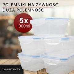 Pojemniki do przechowywania żywności 5x 1000 ml Classbach C-FHD 4007 K Oficjalny sklep Classbach